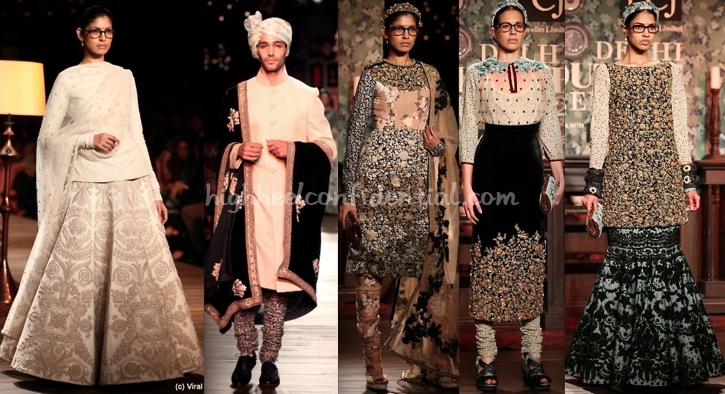 … is this the guy who started the affordable-couture culture in India ? Interesting collection, true to his style though a tad bit too boring with the same trademark glasses and the fug overture.