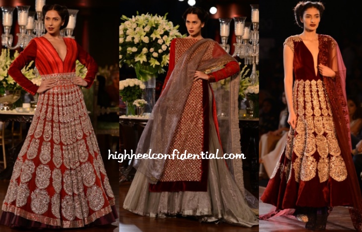 Getting his inspiration from pre-independence India of the 1930s, Manish Malhotra presented a collection heavy on velvet and Victorian style, while staying true to his signature, ultra-feminine and romantic aesthetic of course.