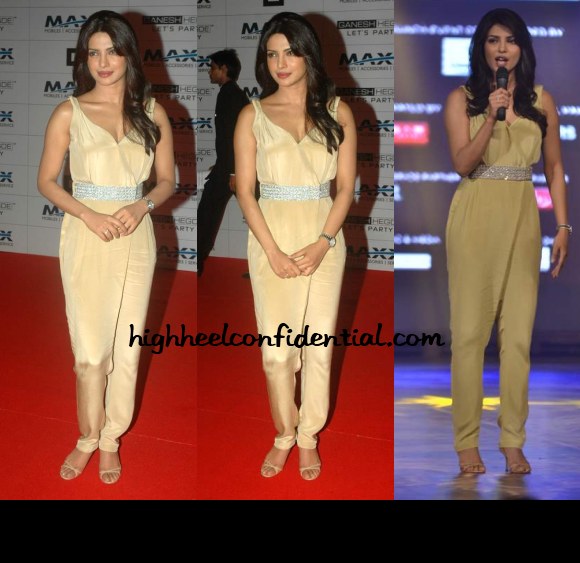 ok i completely agree on the fit, color and particularly that jarring belt that does nothing for Priyankas figure on that jumpsuit..but i will still have to give her props for moving out of her mini dress comfort zone and trying something different..
