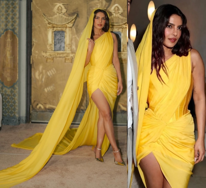 She then changed into a yellow Gaurav Gupta draped gown for the after-party and boy, that yellow looked so good against her skin. Loved both looks!