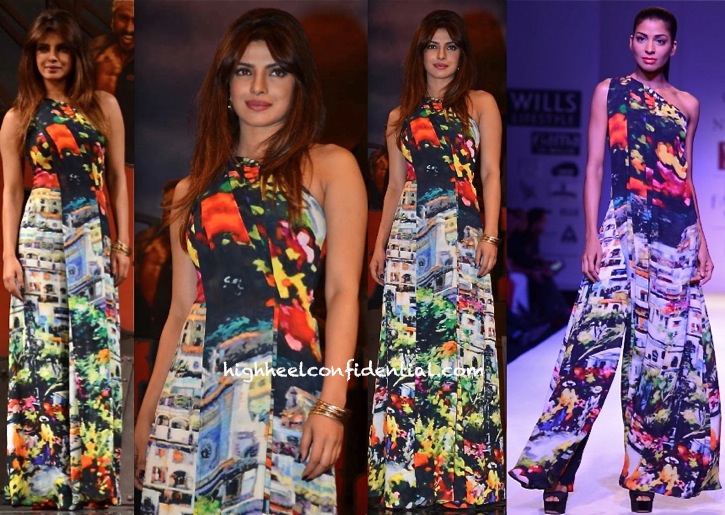 If PC had added a ponytail instead of letting her hair down it would have made a huge difference. It’s a busy print but the colors are gorgeous. Kangana would have rocked this jumpsuit.