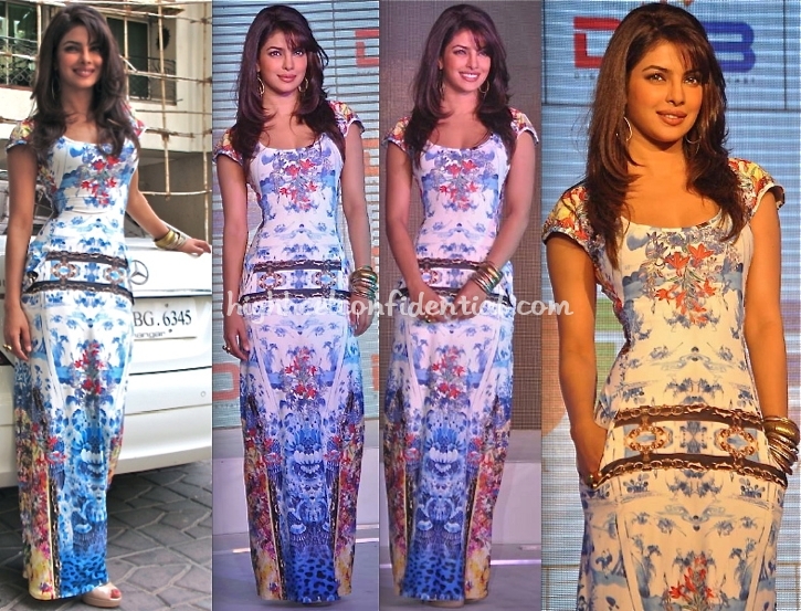 I loved the dress on PC. She has carried it very well. The horizontal detail was meant to create proportion. However,PC has a gorgeous figure and has complemented this outfit very well. Her make up looks good. She could have avoided the accessories as the maxi dress has a very busy pattern.