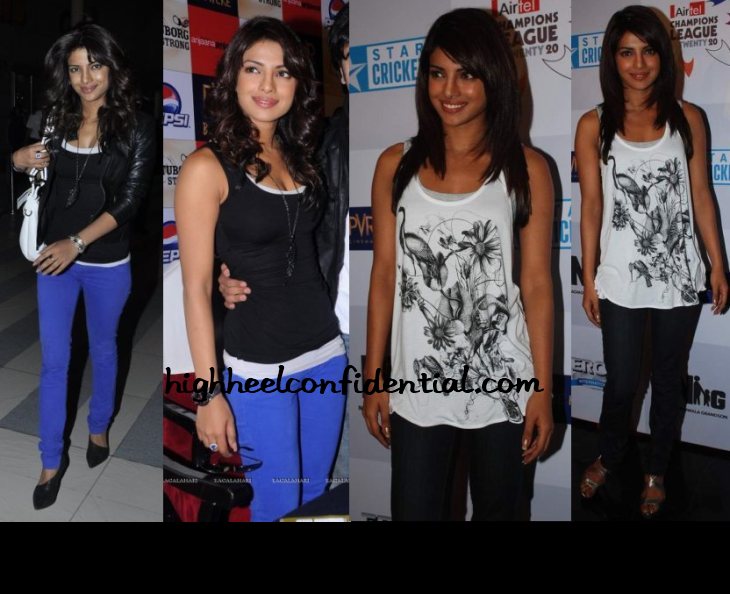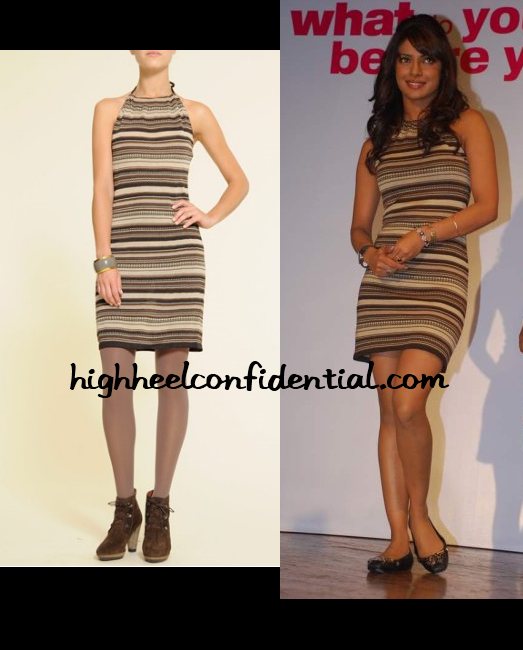 Priyank looks fab in her Mango dress.. quite a change from her prior, (rather monotonous) short versions. It’s different and who else can carry horizontal stripes like Priyanka!