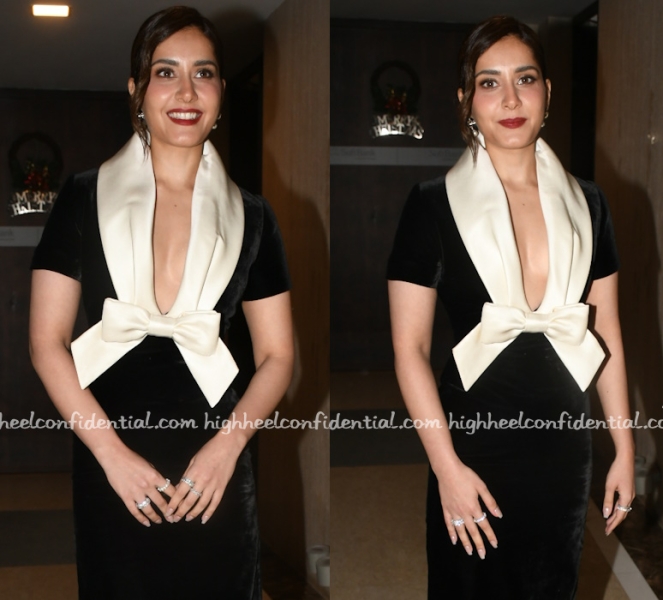 Raashi was seen at the Elle Graduates evetn wearing a Fall 2024 gown from Richard Quinn featuring a plunging neckline. Hair in an updo, pearl drop earrings and a dark red lip finished out her look. She looked great!