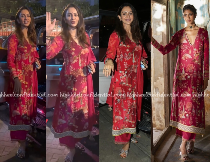 Rakul celebrated Teejri with her family and was seen wearing a red printed kurta suit from Raji Ramniq. Like the set?