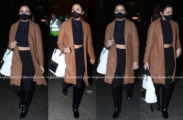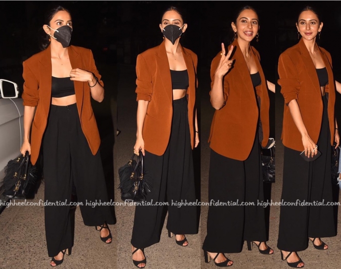 While Parineeti dressed up her active-wear (like here) with a classic coat and pair of knee-high boots for travel, Rakul gave us an easy but pulled-together look for a night out. Who do you think had better success with her look? I am going with Rakul because my brain still can’t compute crop tops for travel, first class or not.
