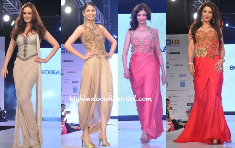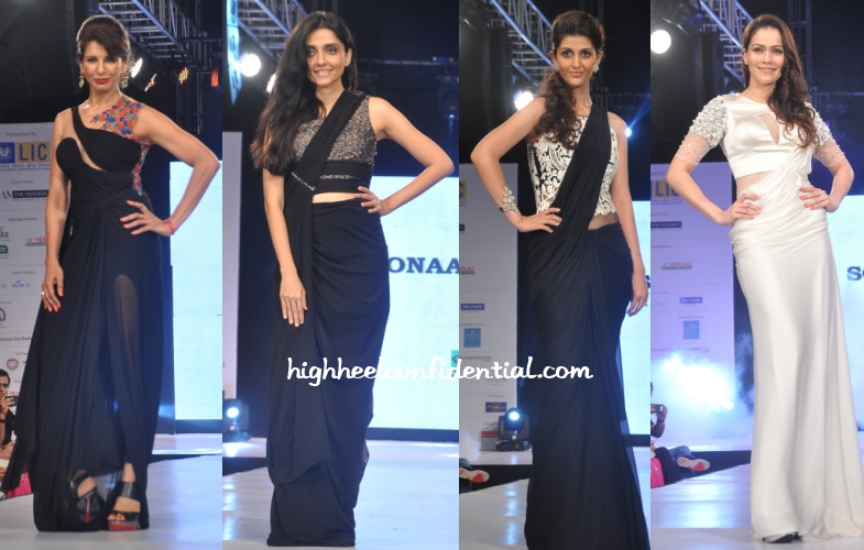 Supporting the Smile Foundation’s ‘Ramp For Champs’ were these ladies wearing sari gowns by Sonaakshi Raaj from the designer’s latest Summer collection.