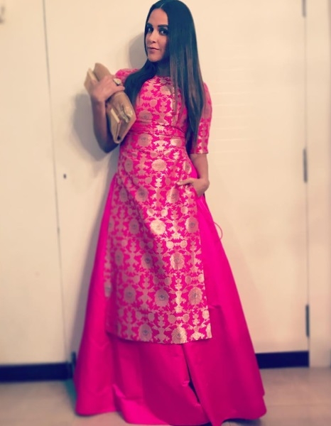 The reverse combo on Neha dhupia looks way better, the hot pink is just too much for the kurta. I think the raw mango cream kurta that konkona Sen wore recently