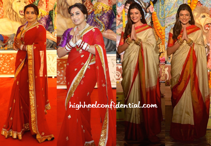 Rani Mukherjee (Left) And Sushmita Sen At Durga Puja Celebrations