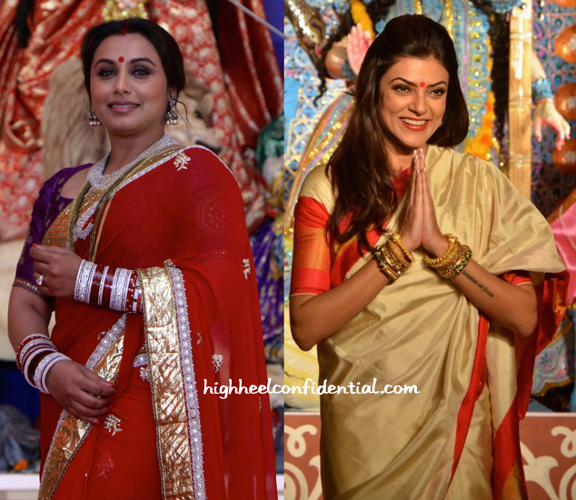I would personally pick Sushmita’s saree but Rani looks gorgeous in her red ‘recently married’ saree. Both ladies look gorgeous.