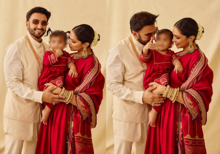 Ranveer and Deepika shared pics of themselves from Diwali with their daughter with all three of them wearing Sabyasachi. Really hope we see Deepika in this outfit again so we can get a full-length look.