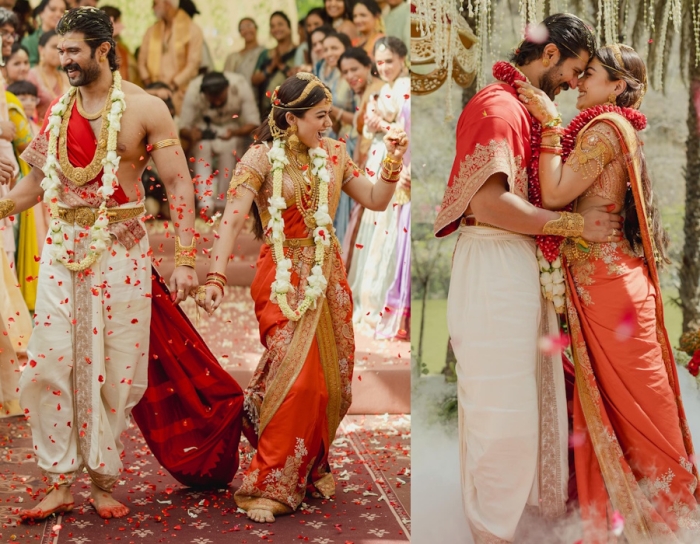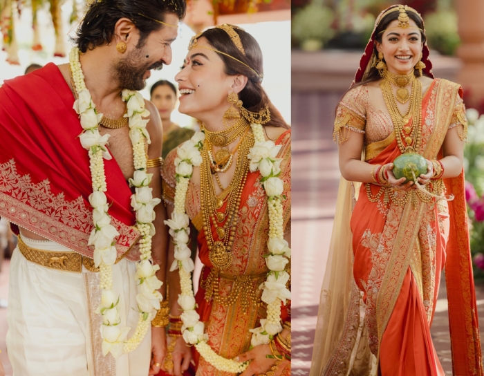 Rashmika and Vijay tied the knot on Thursday with the bride and groom wearing custom Anamika Khanna. Congratulations to the newly weds!
