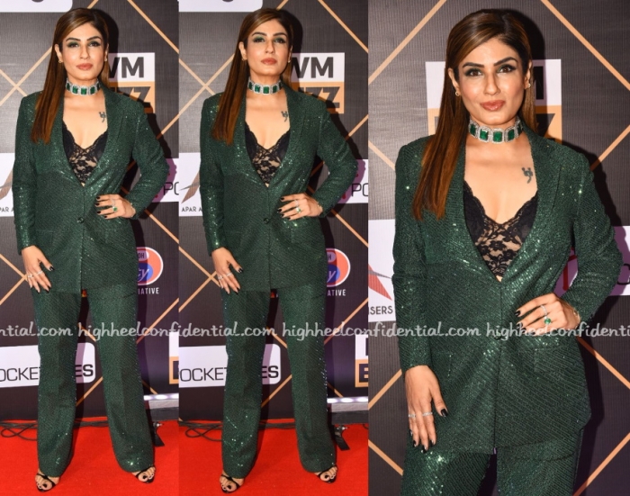 Wearing a sequin pantsuit with a lace bustier, Raveena attended an awards event on Sunday evening. This pairing in theory is good what failed it was the execution. That blazer has a neckline far too deep to make the peekaboo lace buster combo work in its favor. Overall, the look ends up feeling too forced and wasn’t working one bit.
