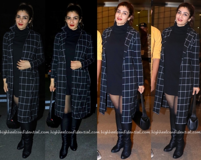 Straight from the airport, Raveena headed to a party recently in Mumbai. Like the look on her?