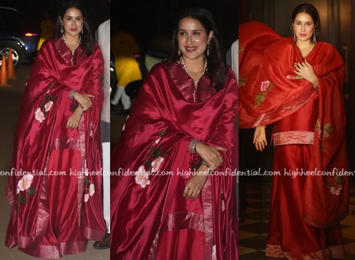 Sagarika attended the Chandhok-Tendulkar mehendi ceremony on Tuesday evening wearing a sharara from her own label, Akutee, one that specializes in hand painting. I didn’t mind the saris but am not warming up to the shararas. You like?