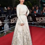 At the premiere of her movie at the London Film Festival, Sayami was seen in a white Sabyasachi anarkali and a matching embellished clutch. Ms. Kher’s promotional looks so far have always been on the less-is-more side and that was also the case here. In keeping the hair simple and adding just a bold red lip, the actor didn’t foray far from the mantra. And it worked. She looked great!