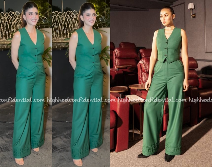 At an event recently, Sanjana was spotted in a vest and pants set from Pocketful of Cherrie. I liked that she kept things simple. She looked good in it.
