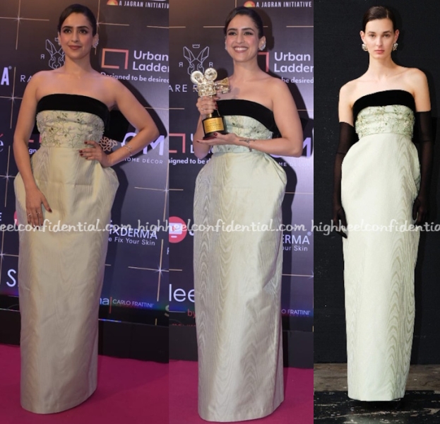 In Chorus By Payal December 4, 2025 The Daily Etcetera 0 Sanya was seen at an awards event wearing a strapless column gown from Chorus with her hair up and diamond ear cuffs. She looked good in it! Sanya Malhotra Sanya Malhotra Photo Credit: Viral Bhayani Tags: Bollywood Hungama Entertainment Awards 2025, Chorus, sanya malhotra Like it? Share it! Previous Article In Gauri and Nainika