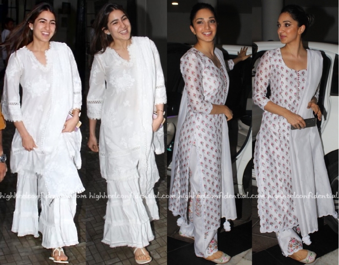 As they were out and about in Mumbai, both Sara and Kiara were photographed in white suits. Skipping jewelry, the ladies rounded out their look with comfortable flats. Like their off-duty look?
