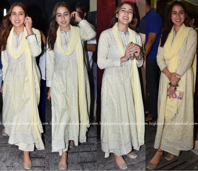 Sticking to her signature off-duty style, Sara took in a movie recently wearing a pastel yellow suit, one that she teamed with a pair of jootis. Nothing to fault here; she looked lovely.