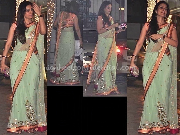 It is to Tabu’s credit that she makes that net sari work even marginally on her. Not feeling the sari at all.