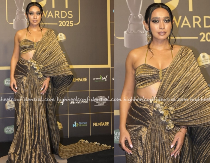 Sayani hosted an awards event and opted to wear a sari-inspired look from Vaishali S Couture. I liked the pick but the makeup was so heavy handed here and too matchey for me to like everything as whole.