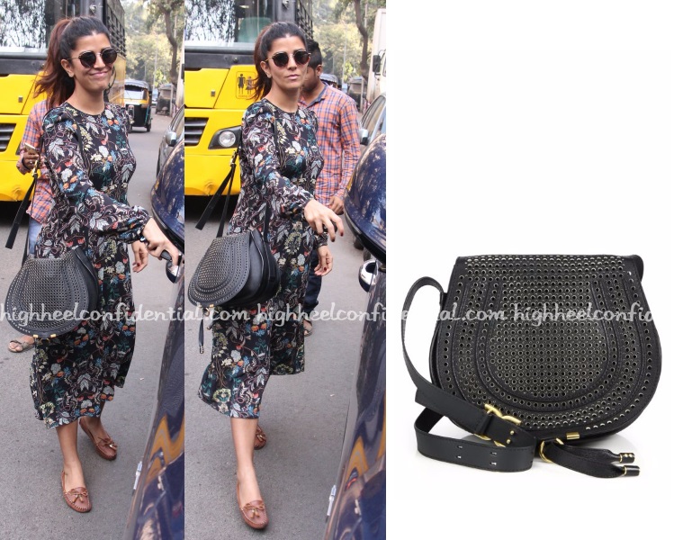 While out and about in Mumbai, Nimrat was spotted keeping it casual in a Zara dress, a Chloé Marcie handbag and tan loafers.