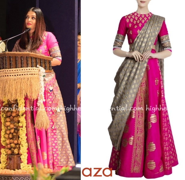 The lehenga looks very pretty on the model. However, Aishwarya seems to be swimming in it.