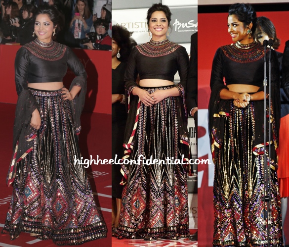 In Busan for the Film Festival, Shahana attended the premiere of her movie ‘Vara: A Blessing’ in a black Indian by Manish Arora lehenga.