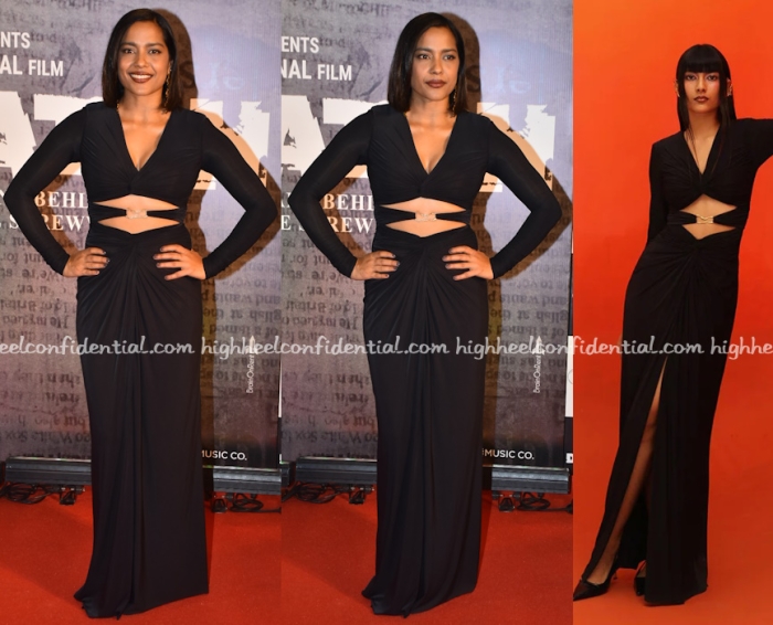 Wearing a cutout maxi from Society of Cloth, Shahana attended the screening of her series on Tuesday evening. The cutout dress wasn’t anything to write home about but she looked good in it nevertheless. The bob and the brown lip helped.