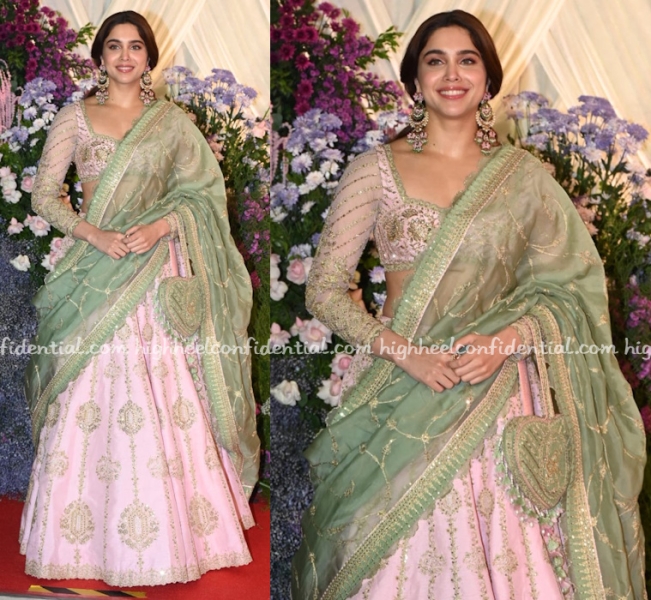In Torani By Payal March 13, 2026 The Daily Etcetera 0 Sharvari attended a wedding reception on Thursday wearing a pink and green lehenga from Torani complete with the label’s signature embroidered heart bag. She looked nice in it. Sharvari Wagh Photo Credit: Instagram Tags: Eesha Barjatya Wedding Reception, Sharvari Wagh, torani Like it? Share it! Previous Article In Yam