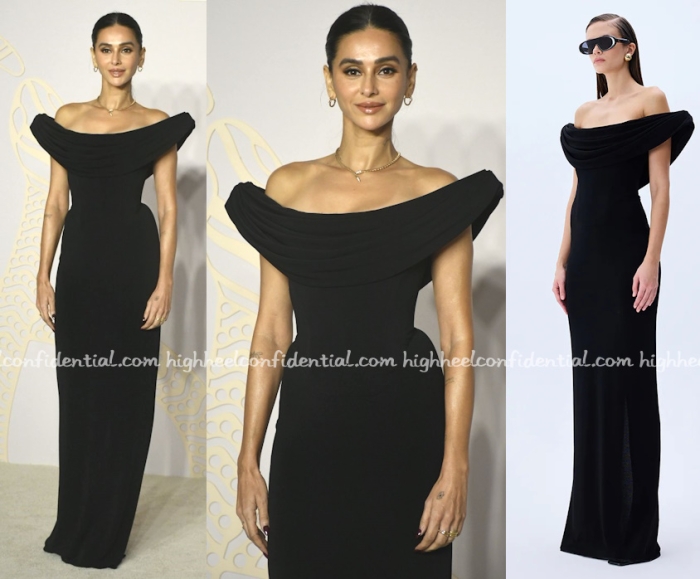 Shibani attended the opening of Bvlgari’s jewelry exhibition on Wednesday wearing an off-shoulder gown from Raisa Vanessa paired with relatively simple jewelry from the label. One to normally wear her hair down, here it being pulled back into the sleek ponytail made a world of a difference. She looked good!