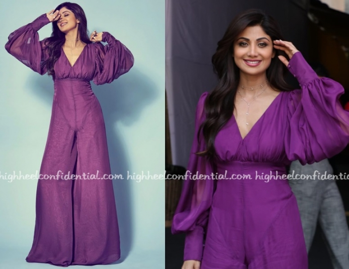 The design of the jumpsuit may be faulty but my first reaction (before I zoomed in on the photos) was ‘Wow! Shilpa looks gorgeous – colour of the jumpsuit, make up and (lack of OTT) accessories, all make for a welcome change.