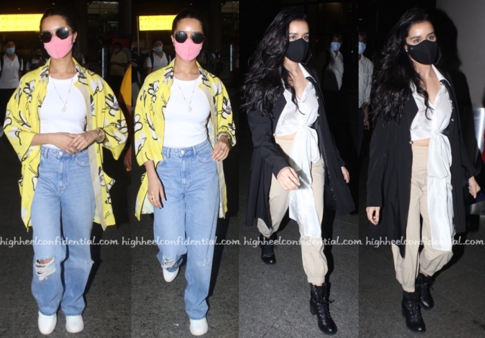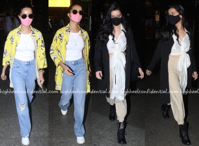 Shraddha was photographed exiting the airport on two different occasions recently, and I wouldn’t have pegged either look as something she would’ve been drawn to ordinarily… This definitely gave us a pause. Like what you see? Can’t entirely say we do.