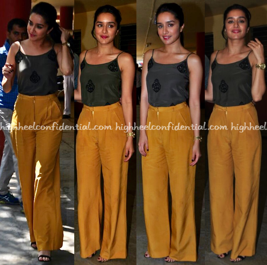 For latest round of movie promotions, Shraddha paired her Pocko & Jacky trousers with a top from Encrustd. Wearing her hair in a ponytail, the actor finished out the look with a classic wristwatch and pair of black sandals. Like the separates on her?