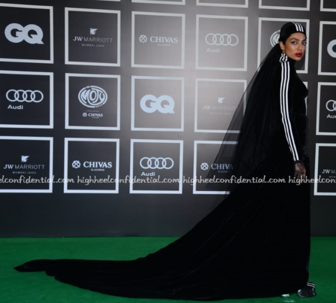 At the GQ Men Of The Year soiree, Sobhita was seen wearing Adidas x Gucci head to toe. Ms. Dhulipala seemed to be struggling with the choice to wear or not wear the matching cap + veil and in the end decided to wear it. I wish she hadn’t but even if she had skipped it, can’t say I liked this outfit at all. Some looks are better reserved for a photo-shoots and this outfit was definitely one of those.