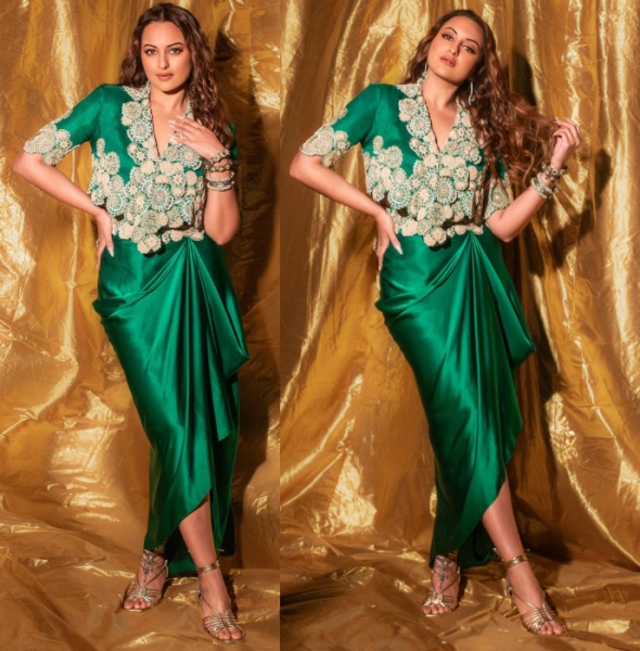 She also wore a more ornate Anamika Khanna jacket and draped skirt set for promotions of her upcoming series. Catch it inside.
