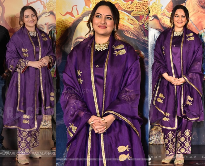 At the trailer launch of a movie she features in, Sonakshi was seen in a purple salwar kurta from Raw Mango paired with a kundan necklace and juttis. The kurta itself was pretty but wish she hadn’t worn the dupatta around her like a blanket. She could’ve just just worn it around her hands.