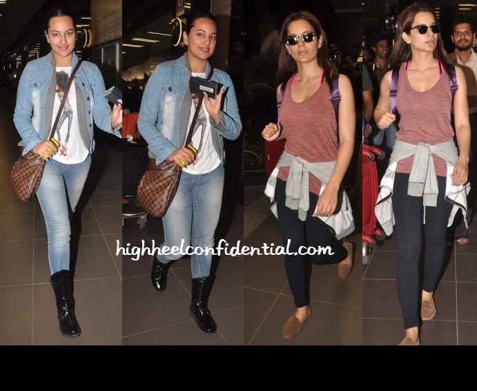 Sonakshi Sinha & Kangna Ranaut at Mumbai Airport