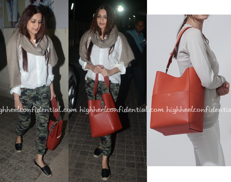 Sonali caught a movie with her family on Saturday evening and was spotted doing casual in a white shirt, camo cropped pants and a Céline Sangle bucket bag. Like her off-duty style?