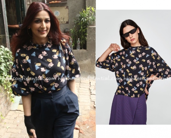 In Zara By Payal March 16, 2018 Found/Off The Runway 3 Sonali caught up with Neelam for lunch on Friday afternoon wearing a telephone print Zara top with navy cropped pants and ankle-strap sandals. A look you’d wear? Sonali Bendre in Zara Photo Credit: Viral Bhayani Tags: sonali bendre, zara Like it? Share it! Previous Article In Pero Next Article In Twos