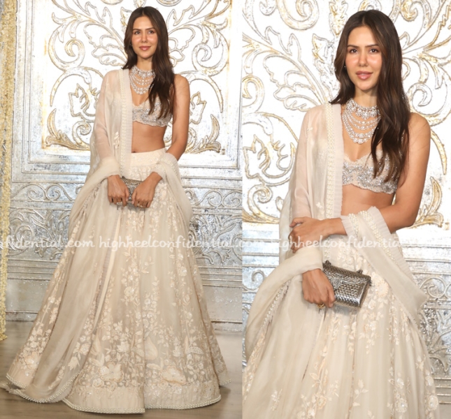 She also sported white to designer Manish Malhotra’s Diwali party wearing a lehenga by him paired with a silver clutch. Catch that look inside.