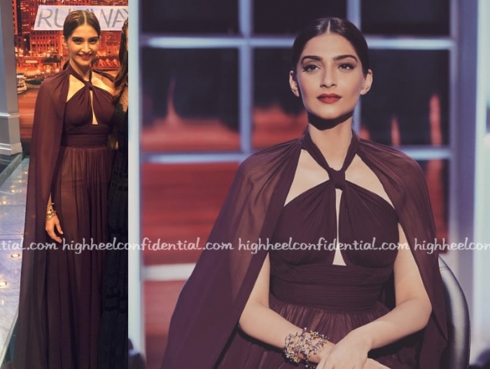 Ms. Kapoor serves as a guest judge on Project Runway Middle East and considering one of the judges was Elie Saab, it aint’ a surprise that she wore creations by the designer for the appearance.