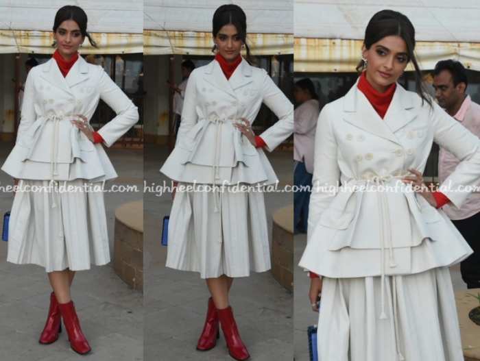 As usual Sonam looks hot?. That white dress with those red boots are ?. But I feel this white dress is meant to be worn in colder climate/ countries. Just in the name of fashion she wears these.