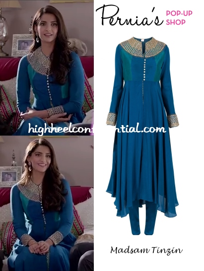 A new song from Dolly Ki Doli was released today and while Sonam sports the Anita Dongre lehenga from the poster in the song itself, we were able to spot a Madsam Tinzin anarkali on her during a dialog snippet that happens in the beginning.
