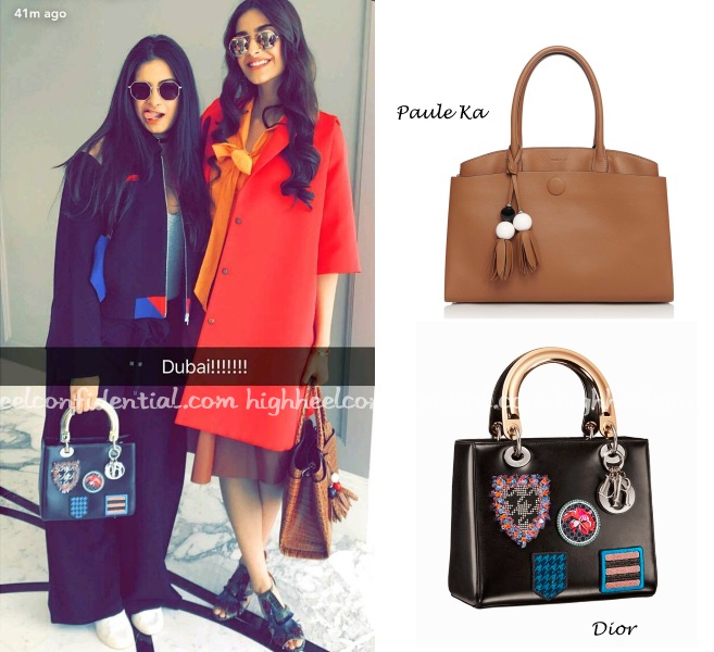 The Kapoor sisters are currently in Dubai and posted a pic of themselves on snapchat while arriving. Sonam caught our eye with her faux croc Paule Ka tote and Rhea with her Lady Dior one.