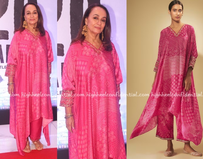 Ms. Razdan was seen at a screening keeping it comfy in a pink bandhani print kurta set from Punit Balana paired with gold earrings and gold sandals. She looked nice in it.