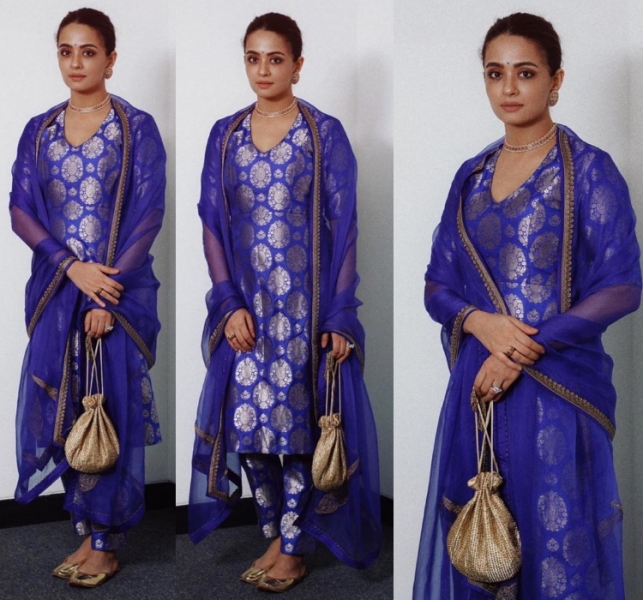 For an event back in Dec, Surveen wore a Raw Mango brocade suit with gold juttis and a gold potli. Wouldn’t change a thing!