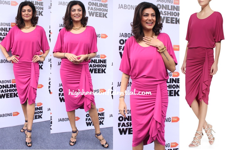 Wearing a pink dress and jewellery both from Michael Kors, Sushmita announced the 2nd edition of Jabong Online Fashion Week. Can’t say am a fan of the dress itself, but Ms. Sen wears it well.