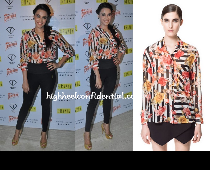 In Zara By Payal April 23, 2013 Found/Off The Runway 11 Our reservations aside about wearing the shirt tucked into those leggings, have to admit, Swara made the look work for her. You like? Left: Swara Bhaskar at Shivan & Narresh Digital Flagship Launch Right: Zara Floral Top Tags: Shivan & Narresh Digital Flagship Launch, Swara Bhaskar, zara Like it? Share it! Previous Article It's Giveaway Time! Next Article In Anita Dongre